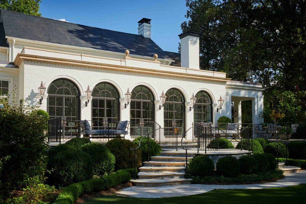 Built in the 1920s, this Classical Revival home is located in the rolling hills of a traditional Atlanta neighborhood. Although the front façade looks virtually untouched, the recent renovations implemented several bold moves, like relocating the original staircase and adding a classical orangerie-inspired Conservatory. Driven by a desire to improve circulation for both everyday use and more formal entertaining, to create more functional spaces, to bring in additional natural light, and to elevate the interior detailing, the interior architecture features subtle, but richly detailed layers and complementary materials.