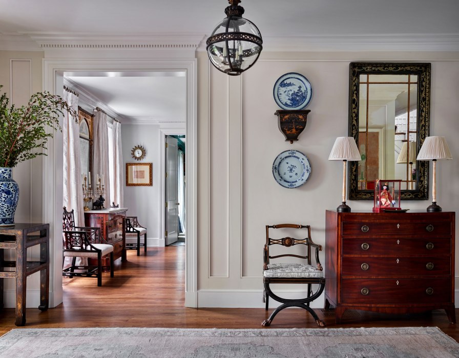 The homeowners and their guests now enjoy a home where highly detailed architecture, sophisticated interiors, and a reimagined formal landscape come together for an elevated experience. The result is a highly traditional home that has one foot in the 1920s and the other in the 2020s.