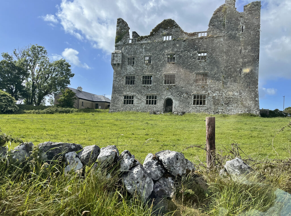 A partially ruined seat near Dromoland – interesting to see the rough stone jack arches above the “newer” larger windows.