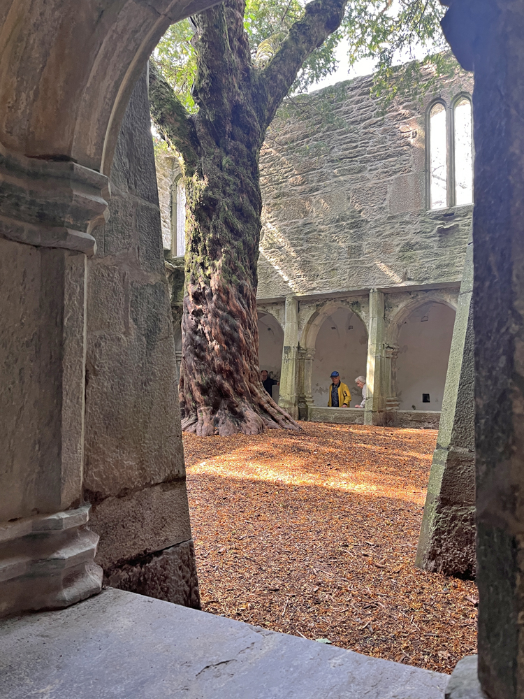 Left: The monastery cloister. Right: The cloister's yew tree is famed for being probably one of Ireland's oldest trees, at least 400 years old, and maybe even as old as the friary.