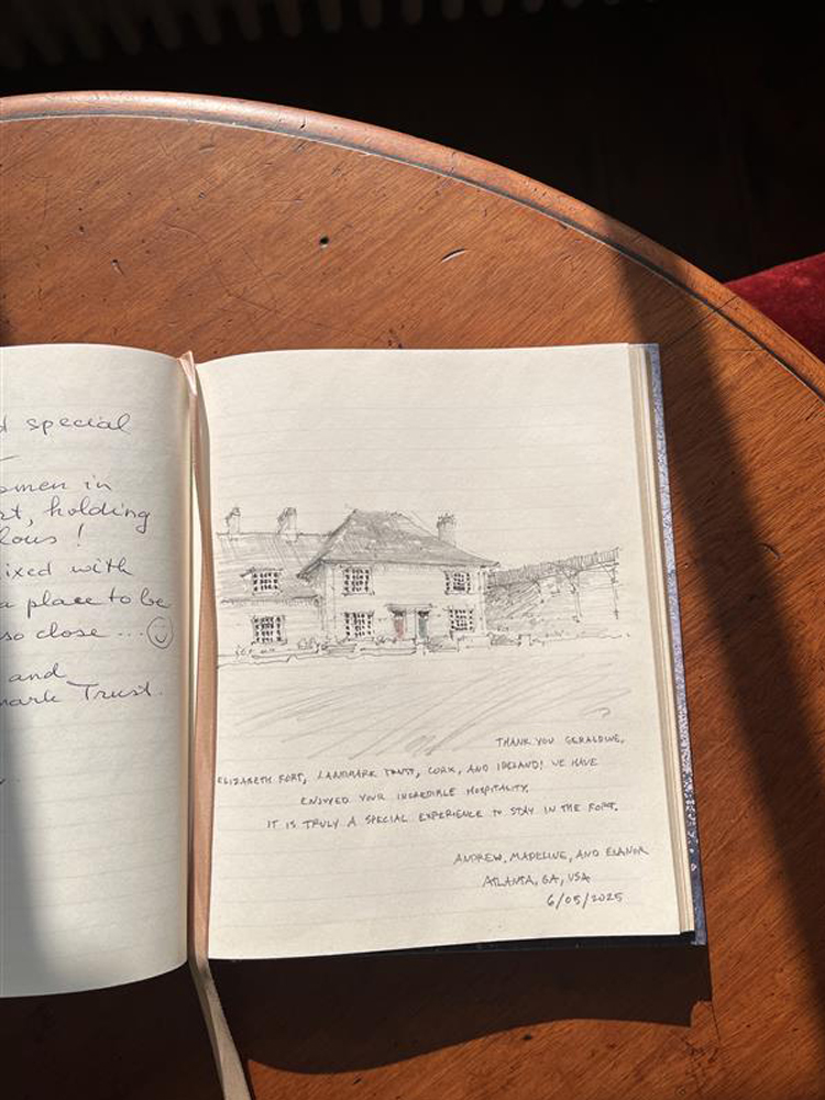 Left: The rear dooryard of one residential unit. An inspiring paint moment. The second floor windows are scaled down slightly from the ground floor windows, something that always makes the second floor seem cozier. Right: Andrew’s drawing of the officer’s houses within Elizabeth Fort.