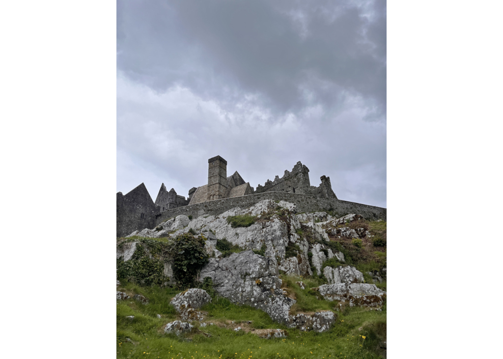 The Rock of Cashel was one of our last stops. The approach to the Rock of Cashel, a monolith topped by religious structures in the midst of rolling plains, is pretty dramatic. It’s a perfect ‘gothick’ ruin, complete with leaning tombstones and whirling ravens.