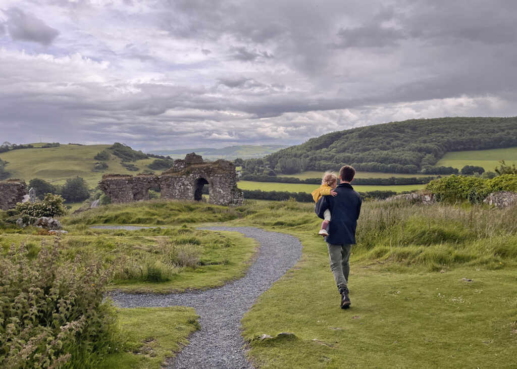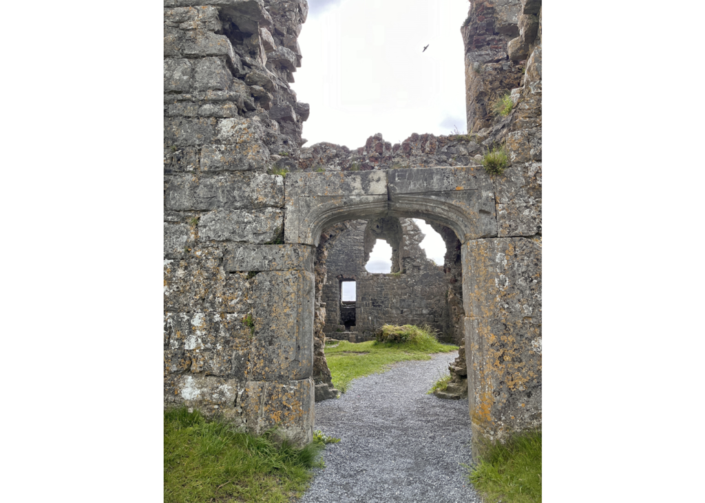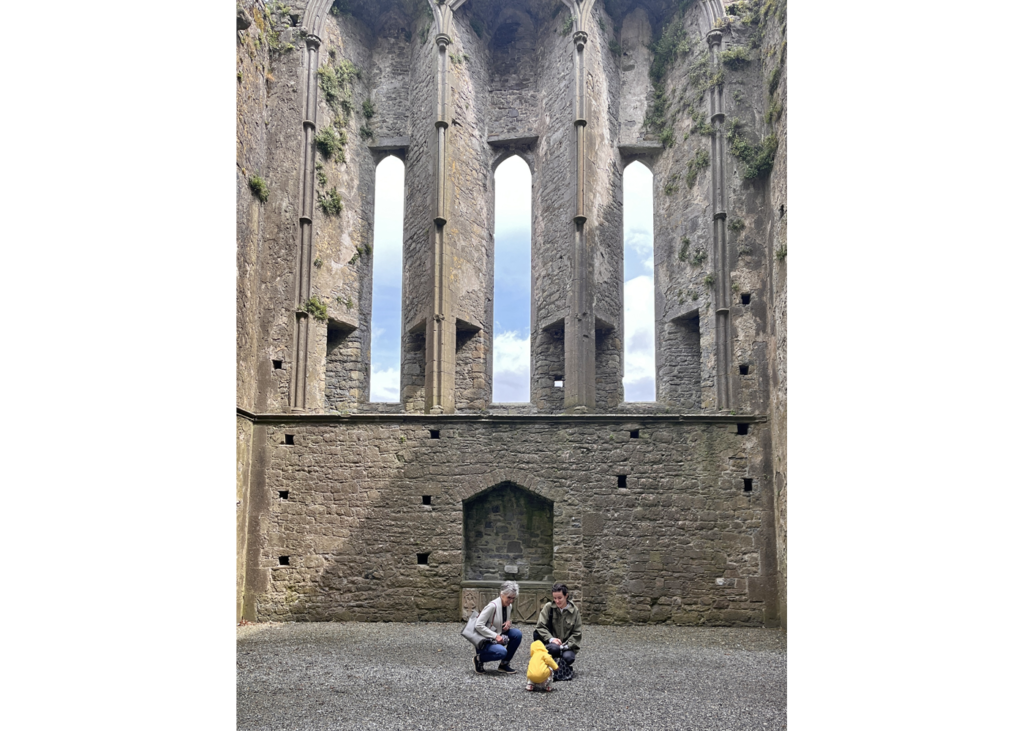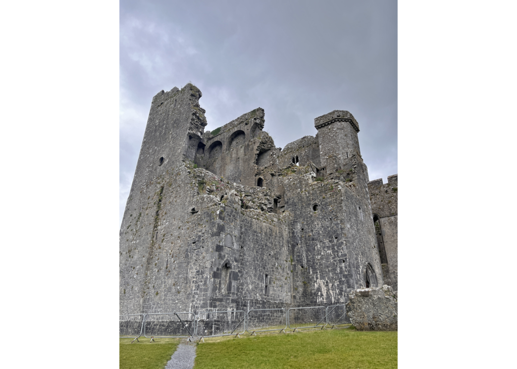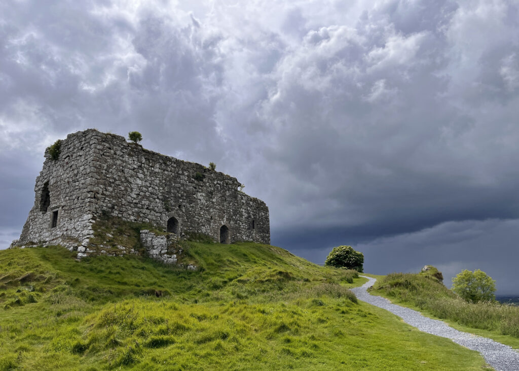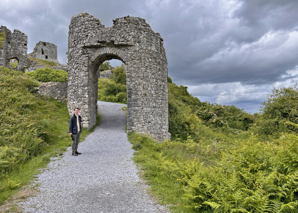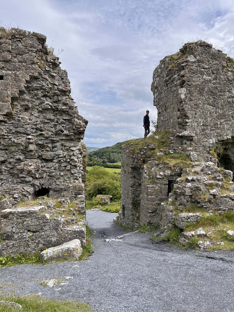 Another rocky promontory on the route back to Dublin, the Rock of Dunamase has been inhabited for over 1000 years. Ruined stone ramparts, gatehouses, and a blue-ceilinged main hall took us to C. S. Lewis’ Cair Paravel.