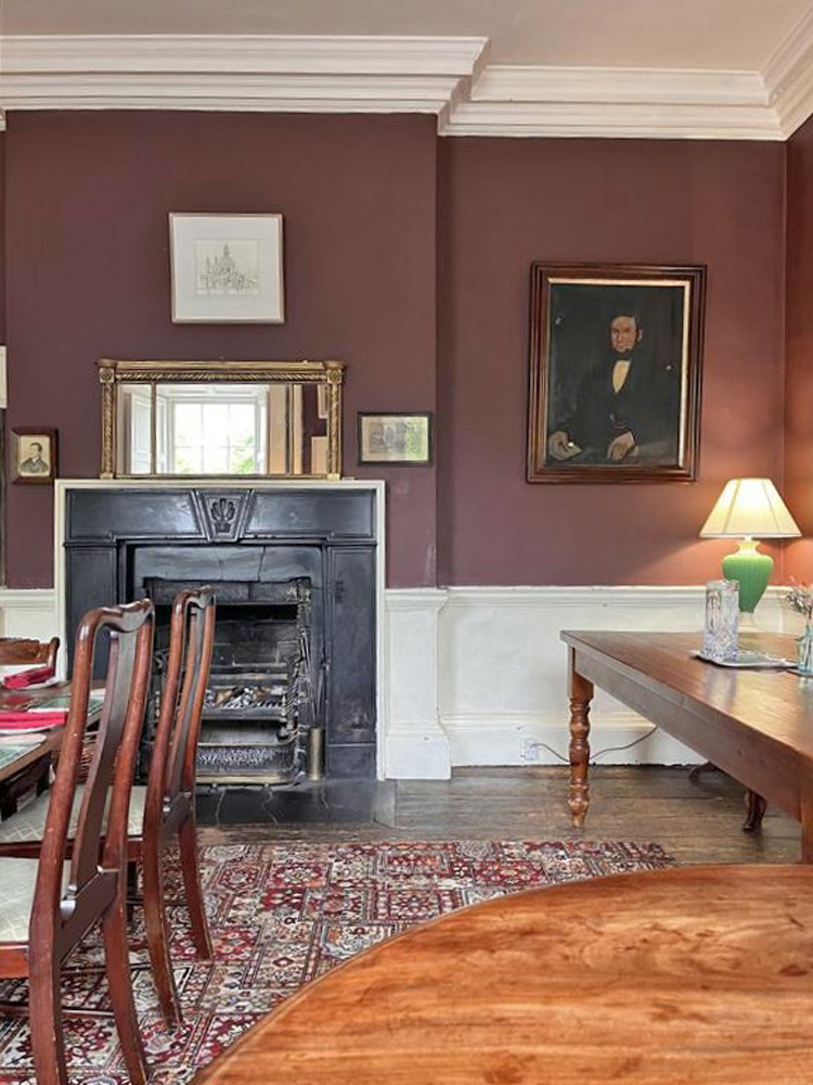 Left: A landing on the main stair, looking to stables through the window. Right: The dining room.