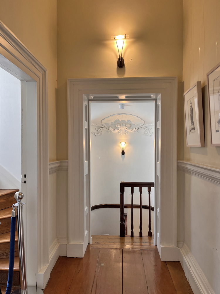 Within, the building is actually 4 levels, containing reception rooms, bedrooms, and a warren of service rooms at the cellar level. The building’s interior detail is impeccable throughout, both in the ‘front of house’ and the simpler, but still well-proportioned cellar. We enjoyed taking photos of the details as souvenirs (and reference material).