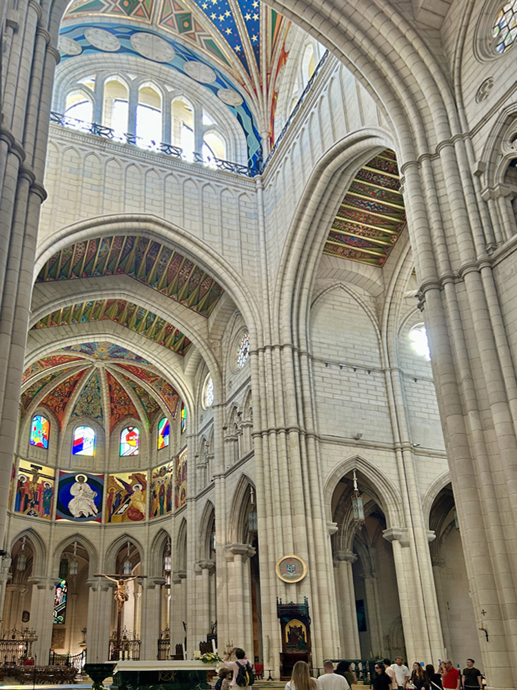 Almudena Cathedral is a striking blend of architectural styles with Neo-Gothic interiors, a Neoclassical façade, and a Romanesque crypt. I also loved the more modern and abstract stained-glass windows. It’s a must-see symbol of faith and artistry in the heart of Madrid.